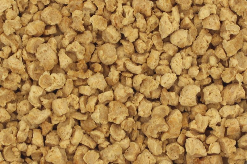 Vollwertiges, teilentfettetes, texturiertes Sojaprotein, hergestellt aus thermisch behandelten Sojabohnen. Aufgrund des hohen Proteingehaltes hauptsächliche Verwendung als Fleischersatz.